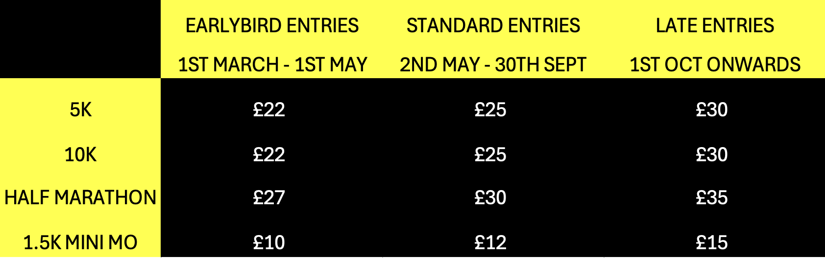 Registration will be open from 8am and will close 10 minutes before the start of each race so please arrive nice and early.